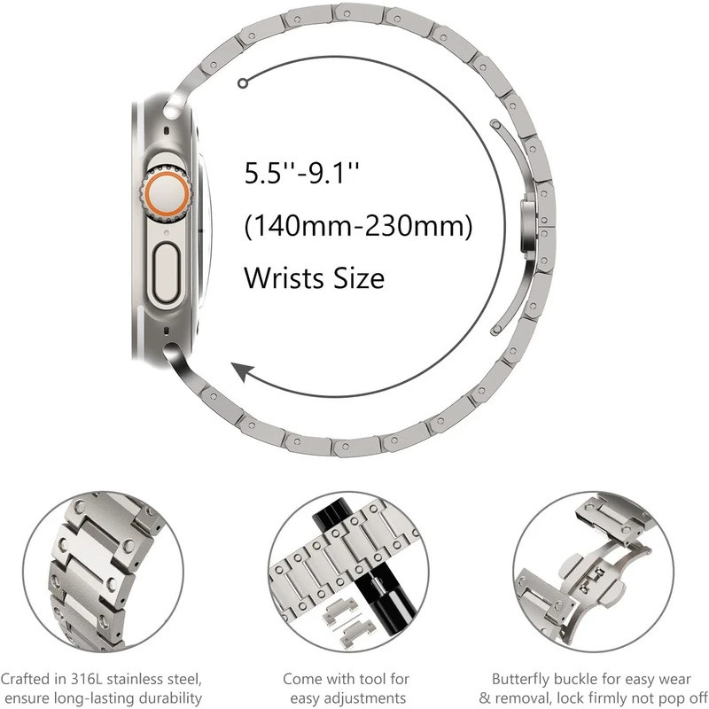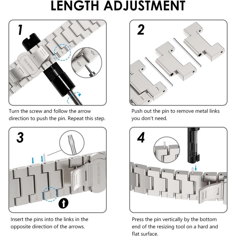 توضیحات : بند استیل ضد حش و ضد حساسیت،..، دارای مکانیزم قفل پروانه ای،..، تنظیم طول بند با جداسازی آسان بند ها از طریق پین،..، مناسب برای استفاده با استایل رسمی برای آقایان و خانم ها