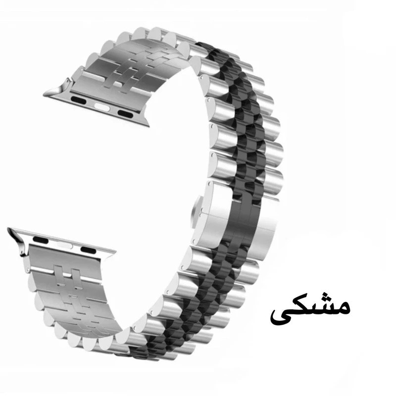 مشخصات اصلیرنگ / مشکی / رز گلدمشخصات فرعیتوضیحاتجنس استیل ضد زنگ مقاوم دربرابر آب با رنگ ثابتمناسب برایآقایان و بانوانجنساستیل ضدزنگنوع لوازم جانبی اپل واچبند